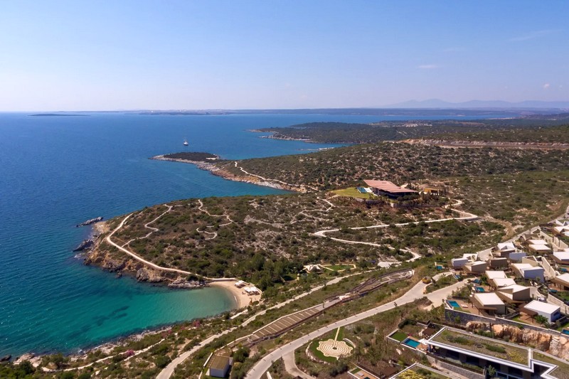 Архитектура курорта органично вписана в первозданный ландшафт Эгейского побережья и подчеркивает его естественную красоту. Где бы вы ни находились, перед вами открываются захватывающие виды на изумрудные бухты и холмы, утопающие в зелени.